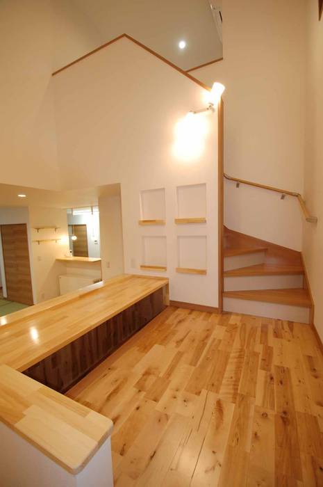 Home Plan Kiyotake 一級建築士事務所 清武建設stairs Solid Wood Wood Effect Homify